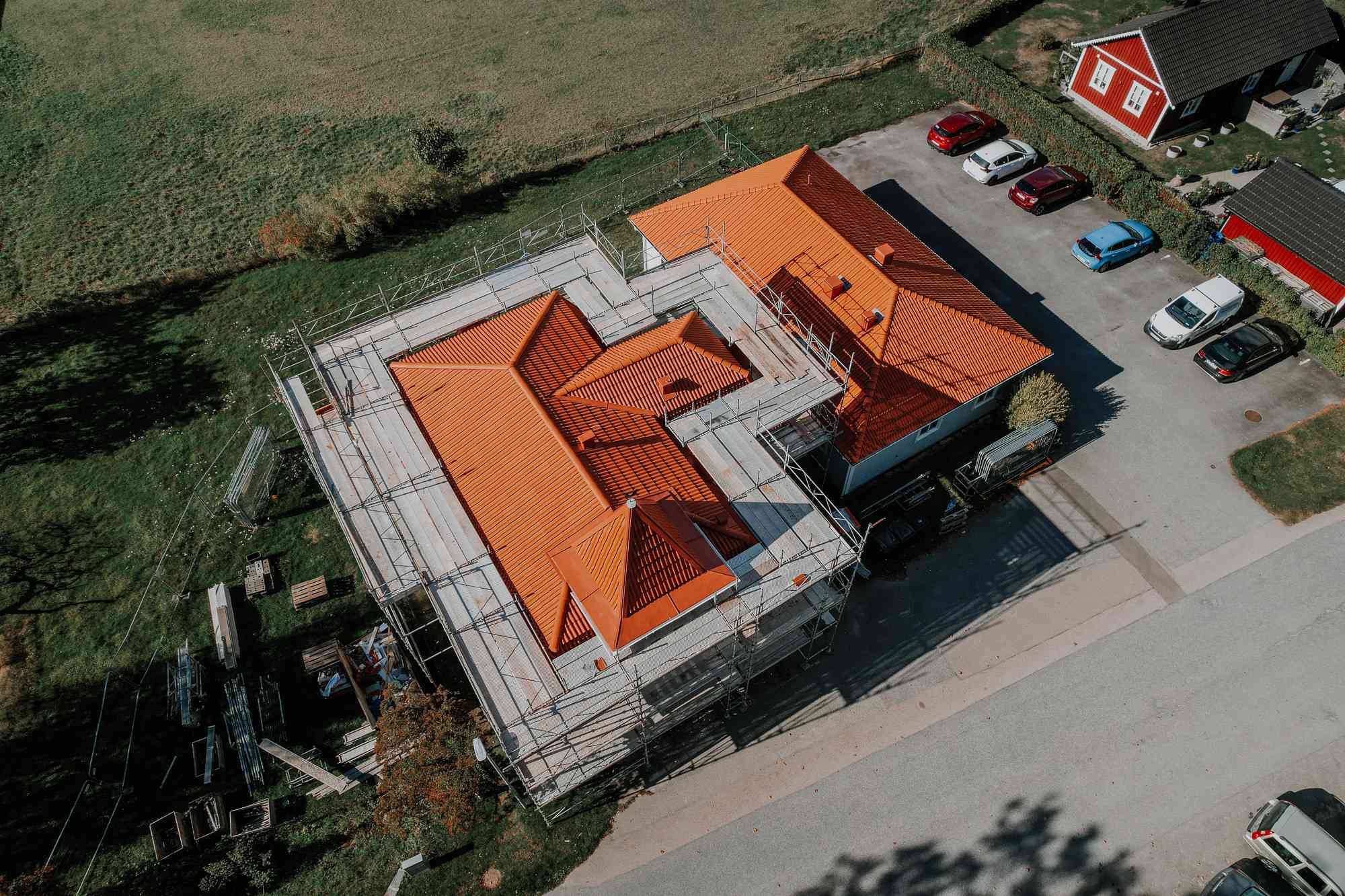 Vårt uppdrag bestod av fasadrenovering och ommålning, med utbyte av rötskadade paneler och snickeridetaljer – specialbeställda för att efterlikna originalet. Dessutom har vi genomfört takbyte med nytt lertegel och tillhörande plåtarbeten.