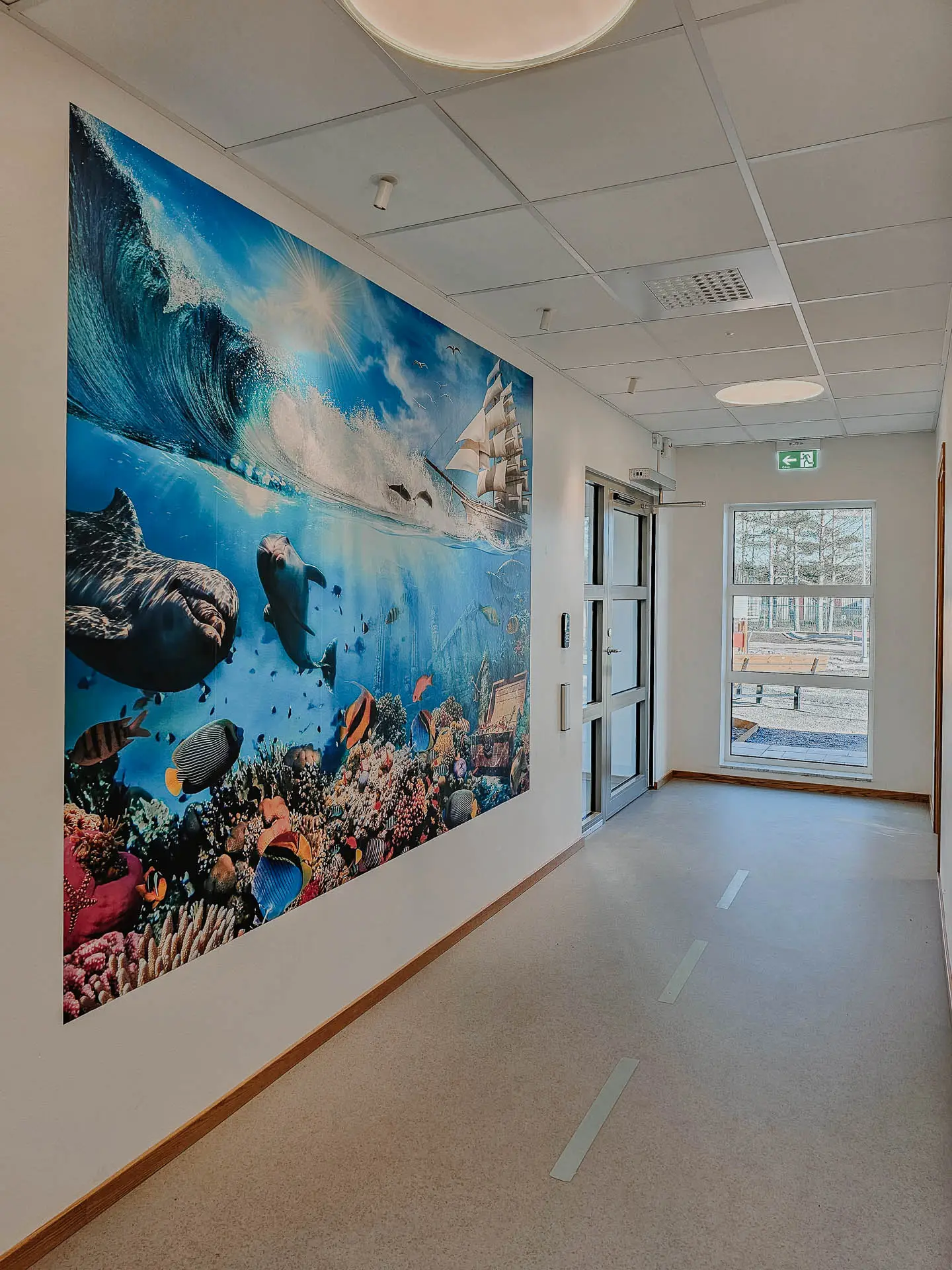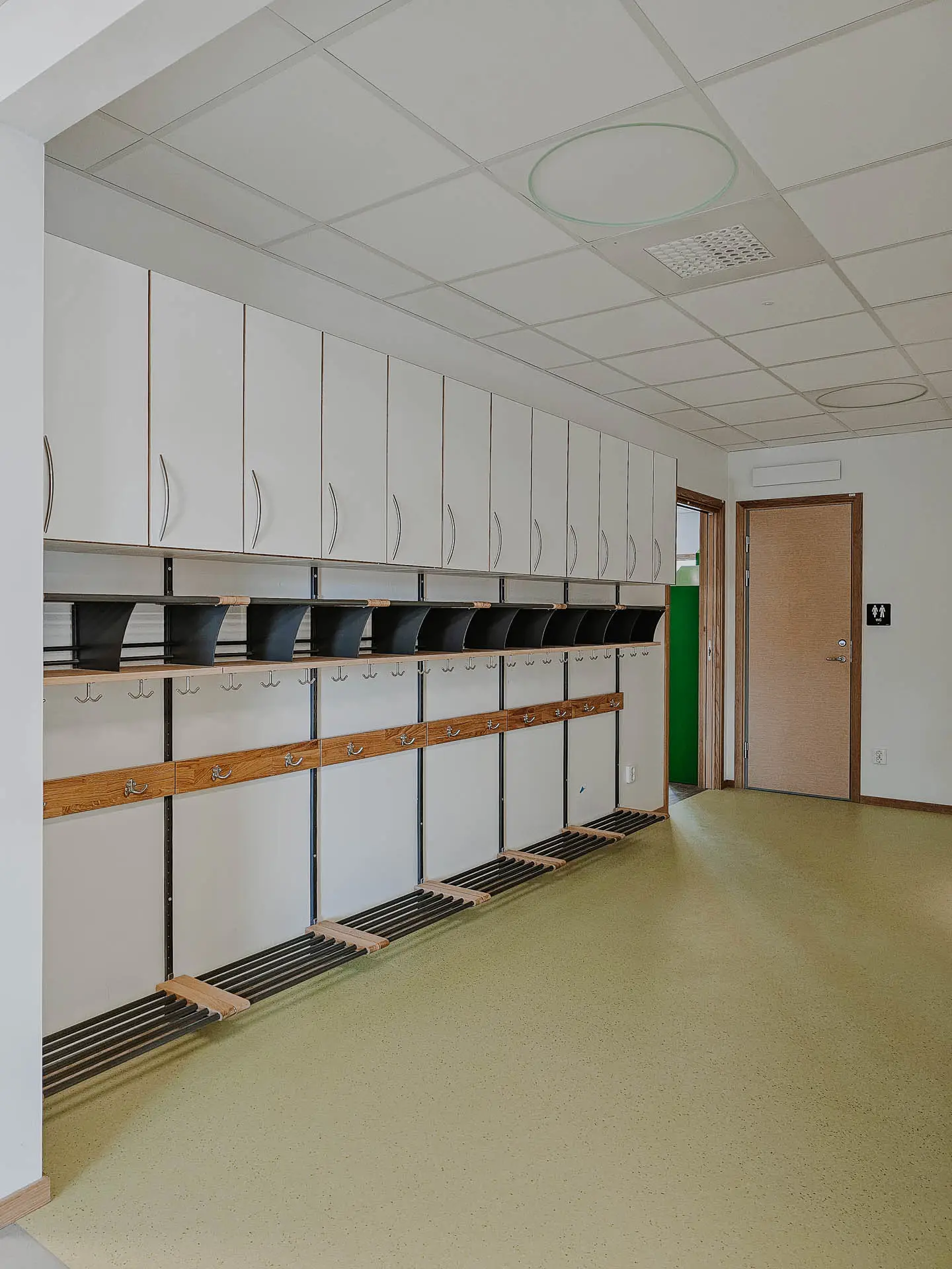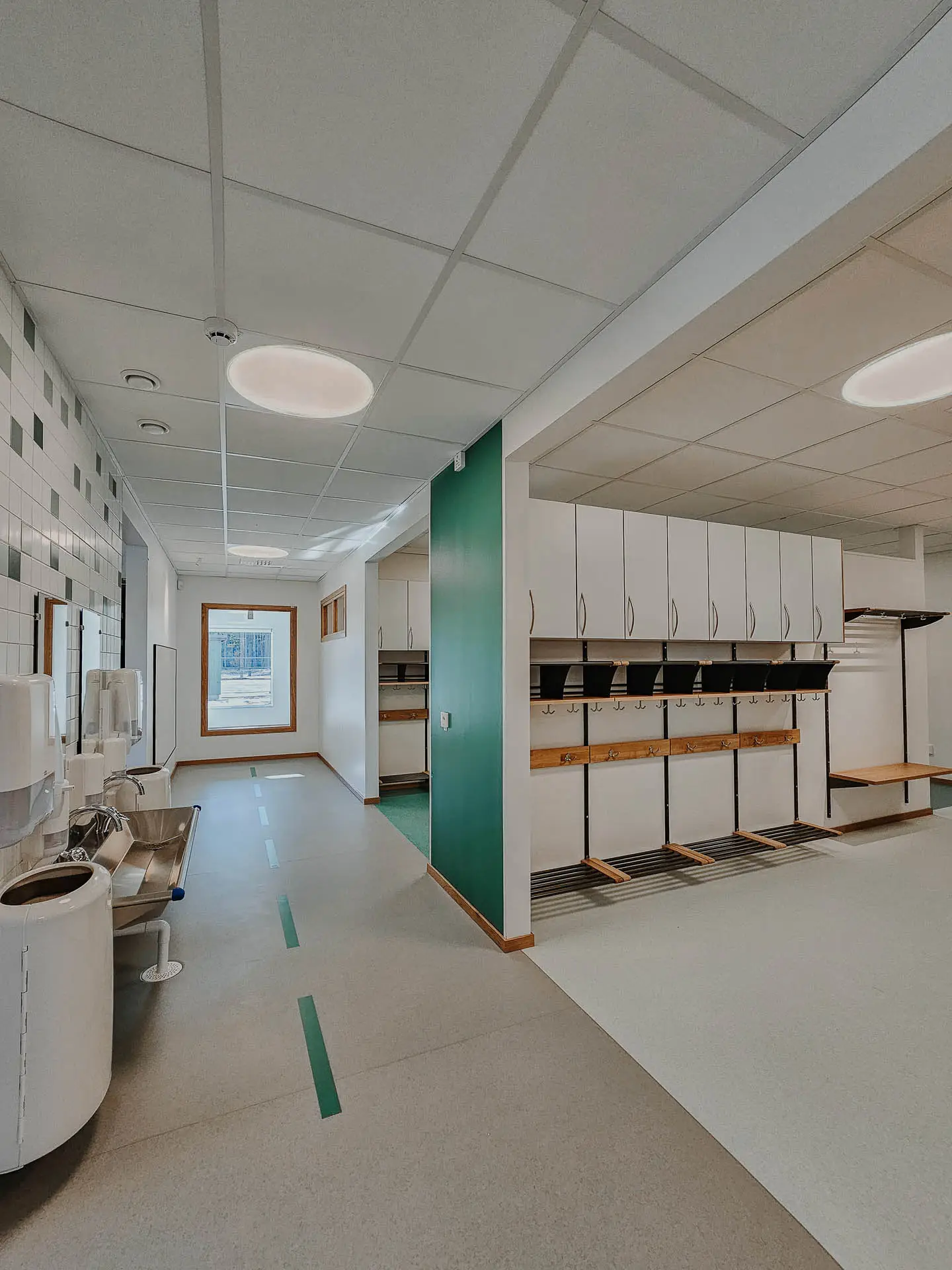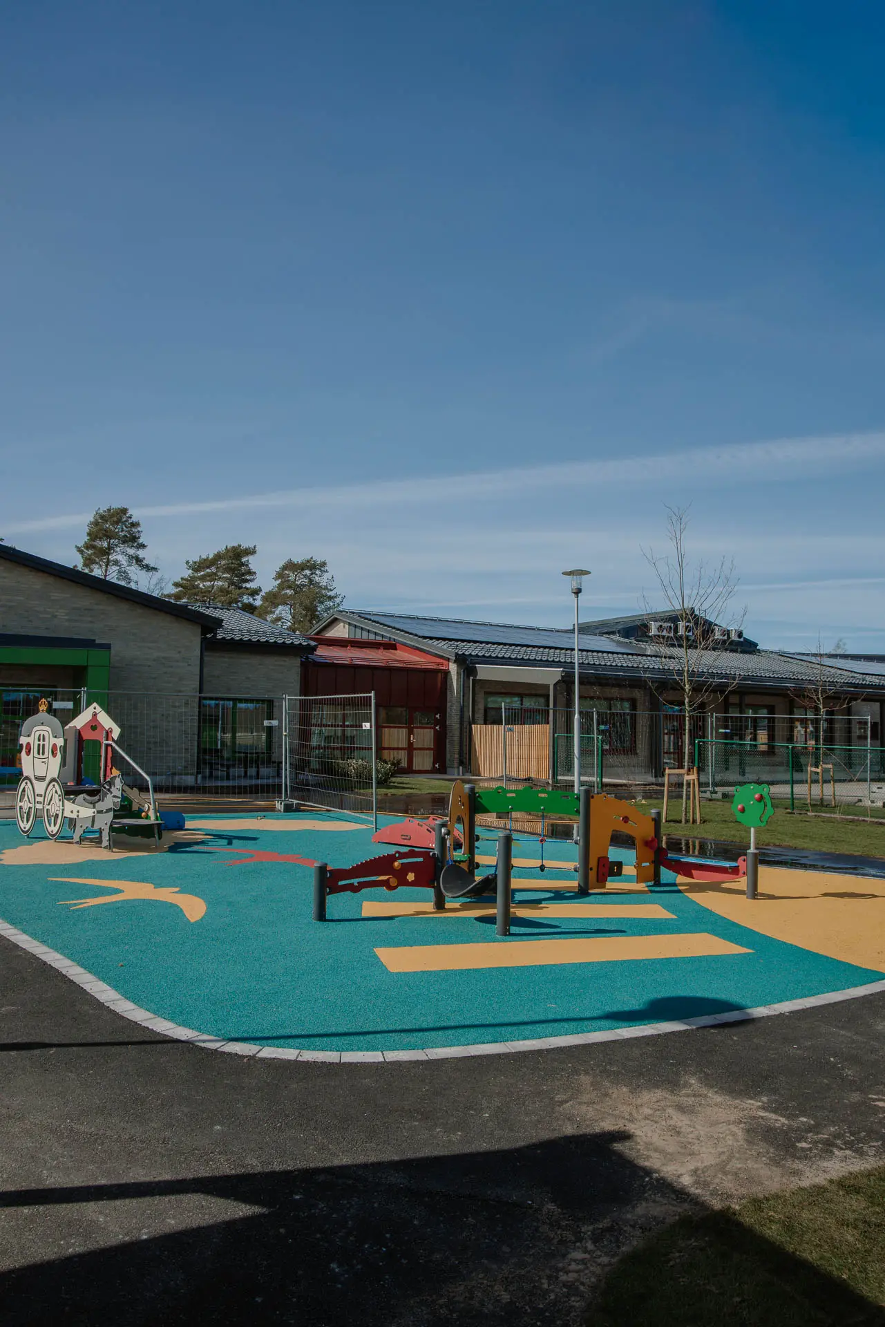 - Förskolan innehåller 8 avdelningar för 160 barn. I förskolan finns det tillhörande personalutrymmen, matsal, tillagningskök samt fyra separata teknikrum. Skolan är även förberedd för nödberedskap i form av nödvatten och reservkraft som kan försörja byggnaden i form av bortfall av vatten och el.
